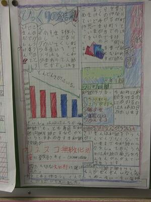 2月に4年生は小川の和紙作り等の見学に出かけます。埼玉の伝統工芸である和紙とはどんなものでどのように作られるのかなどを学んできますが、それに先立ち、自分たちで和紙についてまとめた壁新聞が掲示されていました。とても丁寧な字でしっかり調べてあるなあと感じました。いくつかご紹介します。