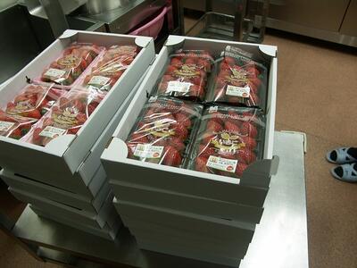 そして、うれしいことに、南永井の河口さんから小松菜、陽子ファームさんから彩り人参、はっぴーいちご園さんからいちご(なんと!あまりん!!)を頂戴しました。どなたも、自分も通った学校だからと言う理由で、無償で提供してくださいました。柳瀬の皆様の地域愛に感動です。もちろんみんな、残さずにいただきました。本当にありがとうございました。