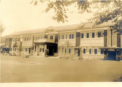 下の写真は、昭和27年当時の柳瀬小学校の写真です。雰囲気がありますね。よく見ると、朝礼台付近に女の子が立っています。もしかすると、まだご存命かも。