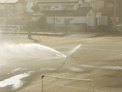 今日は、朝から網のすごい風でした。校庭も砂嵐が吹き荒れていました。柳瀬小学校は校庭にスプリンクラーが設置されていますが、それでも追いつかず、学校の中も砂だらけ。掃除が大変そうです。