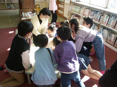 今日は業間休みに図書ボランティアさんによる読み聞かせ「お話ランド」がありました。本好きの子供たちが思い切りのぞきこんで聞き入っていました。図書ボランティアさんには朝の読み聞かせを始め、図書室の掲示や本の修繕など、多岐に渡って子供たちの読書活動のために関わってくださいます。そして子供たちは図書ボのみなさんのことが大好きです。これからもよろしくお願いいたします。