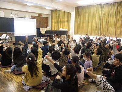 今日は学校保健委員会がありました。今回は、生活クラブ生協埼玉本部より、鵜納里々花様を講師にお迎えし、5年生と保護者の代表の皆様を対象に「こころ・からだ・あたまを育てる5の法則」の題目でご講演をいただきました。