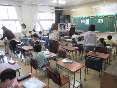 スタートから1週間の学校の様子です!② 投稿: 柳瀬小承認者 (13:41) 朝の1年生の教室の様子です。6年生が1年生のサポートをしてくれています。さすが頼りになりますね。 1年生は、自分で準備をしようとがんばっていました。